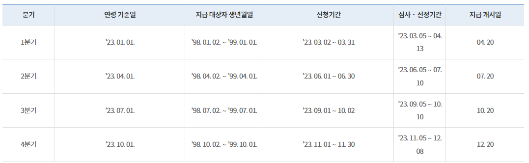 2023년 지급기준 및 지급일정